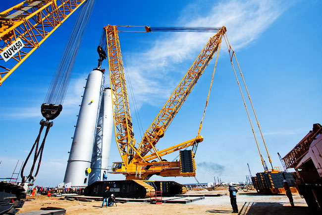 公司擁有大型吊裝設(shè)備履帶式起重機六十余臺,吊裝能力50T-1000T